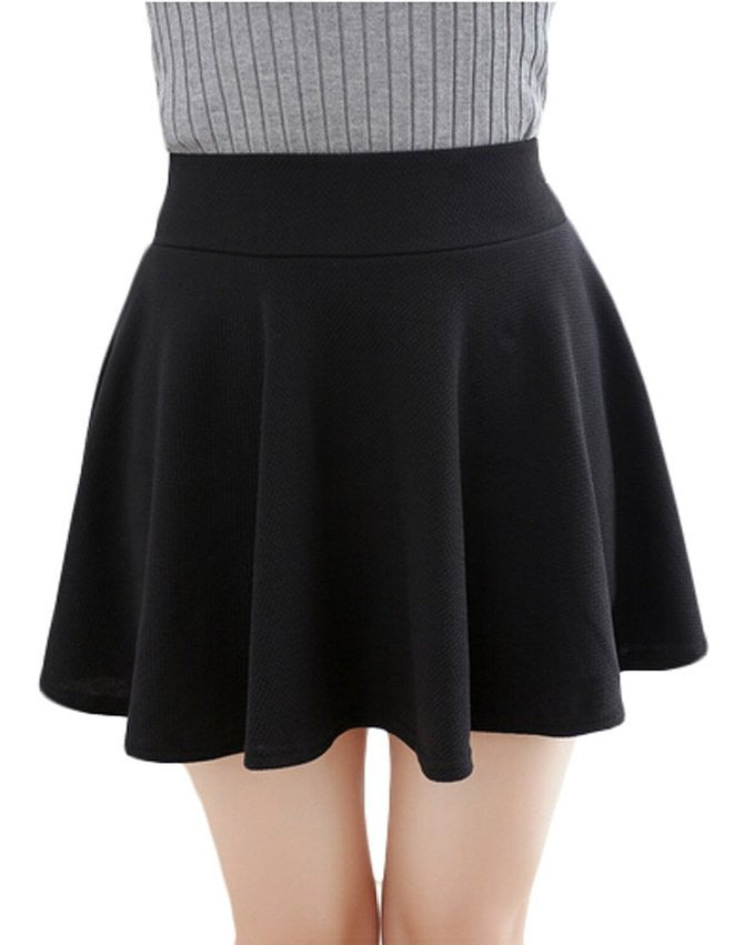 Women's Basic Solid Versatile Stretchy Flared Casual Mini Skater Skirt